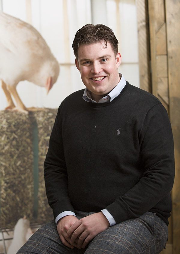 Ik ben nu nog trainee agri en hoop door te kunnen groeien naar accountmanager agri business. Mijn werkzaamheden bestaan voornamelijk uit pluimveehouders bezoeken, overleggen met collega’s, calculaties maken en – in meest brede zin – advisering. Waar ik echt blij van word is als ik samen met een pluimveehouder een specifiek probleem heb kunnen tackelen en dat iedereen tevreden is. Ook van het binnenhalen van een nieuwe klant word ik superblij. En dat we vervolgens samen kunnen starten aan een mooie samenwerking.